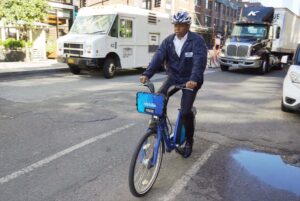 Eric Adams arriving by bike on 9th ave for endorsements by supporters including Vision Zero amongst other supporters, to 9 ave & 14st., mhtn.