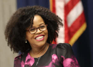 BOSTON, MA – JANUARY 6: New Boston City Council president Kim Janey is pictured at Boston City Hall on Jan. 6, 2020. Boston entered a new political frontier Monday, officially ushering in the most diverse City Council in the citys history and electing new leadership with what councilors said is a proactive agenda to tackle inequities in housing, transportation, and education access. (Photo by David L. Ryan/The Boston Globe via Getty Images)
