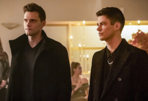 The Flash — “Goldfaced” — Image Number: FLA513a_0059b.jpg — Pictured (L-R): Hartley Sawyer as Dibny and Grant Gustin as Barry Allen — Photo: Katie Yu/The CW — © 2019 The CW Network, LLC. All rights reserved