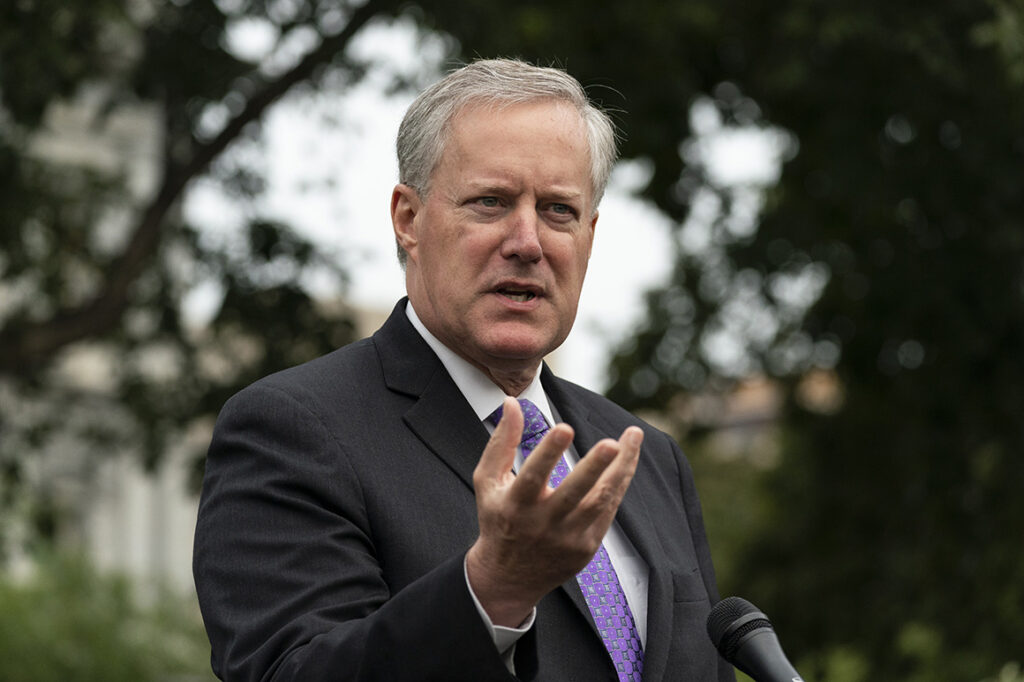 White House Chief of Staff Mark Meadows speaks with reporters at the White House, Thursday, Sept. 17, 2020, in Washington. (AP Photo/Alex Brandon)