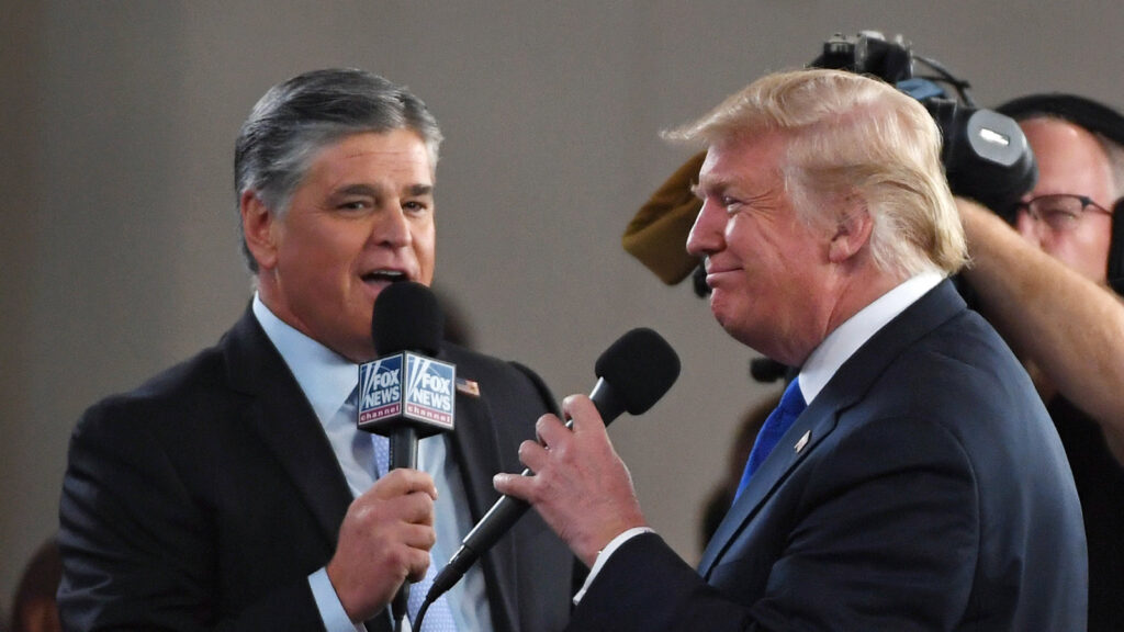 LAS VEGAS, NV – SEPTEMBER 20: Fox News Channel and radio talk show host Sean Hannity (L) interviews U.S. President Donald Trump before a campaign rally at the Las Vegas Convention Center on September 20, 2018 in Las Vegas, Nevada. Trump is in town to support the re-election campaign for U.S. Sen. Dean Heller (R-NV) as well as Nevada Attorney General and Republican gubernatorial candidate Adam Laxalt and candidate for Nevada’s 3rd House District Danny Tarkanian and 4th House District Cresent Hardy. (Photo by Ethan Miller/Getty Images)